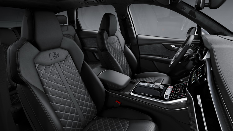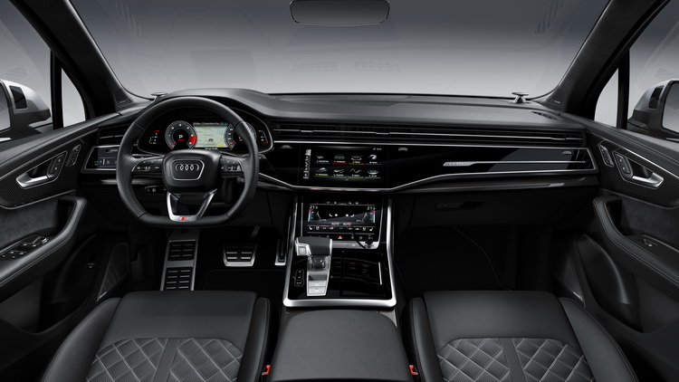 新SQ7水箱罩換上了加入六道鍍鉻直柵的八角形設計,並以一圈啞光銀色飾板包圍。後視鏡外殼與車身下護板、車側門檻也以亞光銀塗裝處理,車尾則有削光鈦黑色的分流器。頭尾燈也都採用了AUDI最新的LED科技。