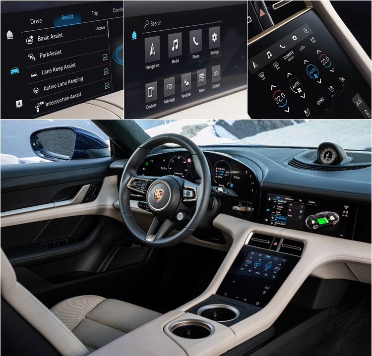 以中央網路控制的底盤系統Taycan 底盤使用中央網路控制系統,內建的保時捷 4D 底盤控制系統可即時分析並同步所有底盤系統。創新底盤系統包含主動式三氣室氣壓懸載系統,附保時捷主動式懸載調整系統(PASM)電子阻尼控制系統,以及包含保時捷運動化動態底盤控制系統(PDCC Sport)電子機械式防傾翻穩定系統,結合保時捷扭力分導升級系統(PTV Plus)。配備兩具電動馬達與動能回收系統的四輪驅動控制系統是獨特的嶄新技術。高達 265 kW 的輸出功率使 Taycan 的動能回收功率遠高於大部分競品車款,駕駛測試數據顯示約 90% 的日常煞車得以透過電動馬達執行,無需啟動車輪煞車。