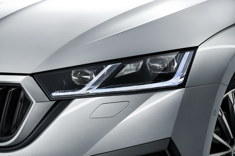 新Octavia車身尺碼加大,4689mm的車長比三代房車型與COMBI旅行車型分別增加19mm與22mm,車寬也增加了15mm。車身加大讓COMBI旅行車型的行李廂空間達到640公升,比過去增加30公升,房車型則達比過去增加10公升的600公升。頭燈造型更為細窄銳利且近光燈、遠光燈、日行燈均為LED的全LED頭燈也是全車系標配。尾燈、霧燈與煞車燈有都是LED。也提供matrix LED頭燈做選配。