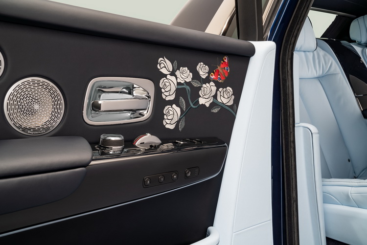 Rolls-Royce一向給人尊貴奢華的品牌形象,對於客戶的要求更是以嚴謹的態度使命必達。一位來自瑞典斯德哥爾摩的企業家向Rolls-Royce下訂了一台Phantom,這位企業家一家人都熱愛花卉,他的老婆與四個孩子中的兩個都是以花卉名稱來取名。所以他向車廠的客製化部門團隊下了挑戰,希望所下訂的Phantom能夠讓他們全家沉浸於花朵旖旎夢幻的氛圍之中。 Rolls-Royce客製部門的設計師、工匠與工程師們接受了這個挑戰,所呈現的作品就是這輛下了百萬次繡針的「玫瑰幻影」─Rose Phantom。
