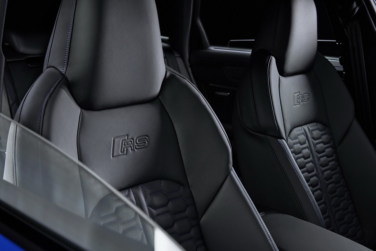 特別的RS6 Avant內裝用上高檔次的材質點綴,獨家Valcona高檔皮革賽車座椅,結合牛仔藍色車縫線,再利用碳纖維飾板來增加強烈運動感,另外還有專屬打孔方向盤、RS腳踏墊等,都是RS6 Avant車上夢幻逸品之一。性能車上主被動安全也不能少,標準配備制動巡航系統以及車道維持等科技項目,特仕車另增加後排加熱座椅、抬頭顯示器、電動啟閉後尾門、高檔音響等設備。