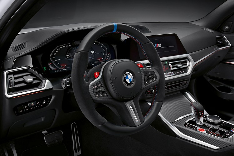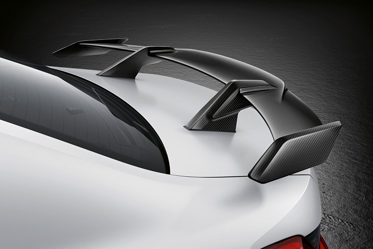 最後BMW也針對M3與M4推出19吋到21吋的鋁圈選擇,其中也包含鍛造打造的輕量化材質,顏色也有金色、黑色與鐵灰色等幾種款式。其它套件還有大型碳纖維後尾翼、碳陶瓷煞車系統、碳纖維定風翼、碳纖維側裙以及碳纖維格柵等。至於座艙內的M Performance套件當然包括一個M款性能方向盤、碳纖維排檔桿、獨特的車內地毯、門檻與各類碳纖維飾板等。