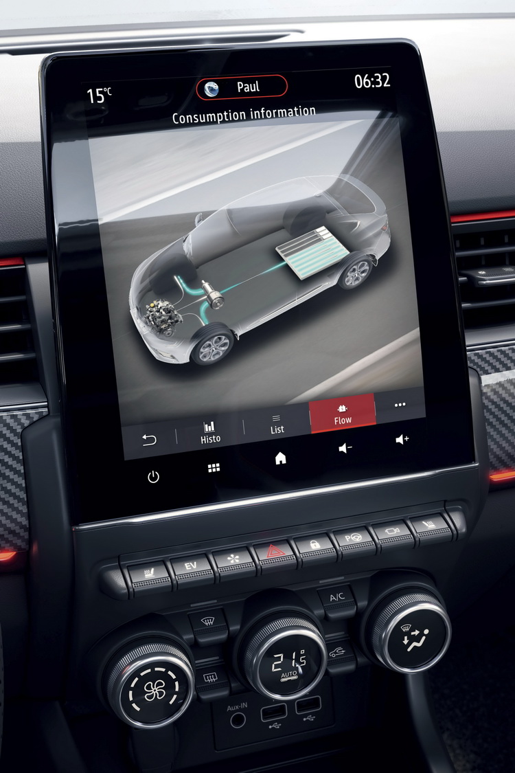 動力上主打搭載RENAULT所自行開發的「E-TECH」油電混合動力系統,這套系統取得了許多的專利,其主要組成零件部品則是在雷諾日產三菱聯盟之下相互共用。系統是由一具新世代的1.6升直列四缸汽油引擎搭配二具電動馬達、多模式變速箱及鋰離子充電池所組成。綜效最大馬力輸出為140hp。