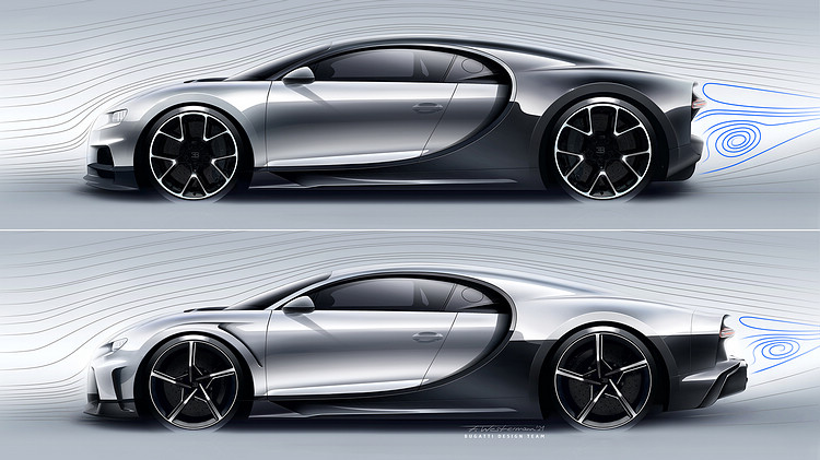 根據Bugatti的說法,Chiron Super Sport 代表的是更高的舒適性和優雅性,而且不同於Chiron Pur Sport訴求的轉向敏捷性能,這款車一切設定都是以追求極速而生。Chiron Super Sport 的流線型車身搭載一套最佳化空氣動力學的設計,從前擾流到後擴流器,都以此為原則進行改良升級。