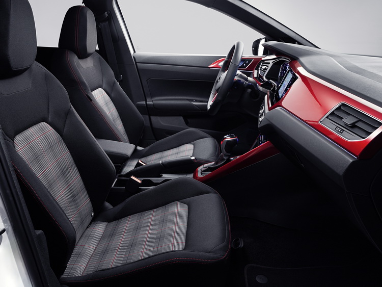 車室內裝由黑、紅、灰色與鍍鉻交織而成,車頂則以鈦黑色來搭配。花呢格紋座椅與紅色縫線這些GTI經典元素都健在,多功能皮質運動方向盤也是標配。選配的Beat六支揚聲器300W輸出音響為了節省空間將擴大機配置於地板之下。行李廂容量為351公升。