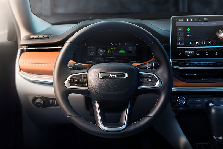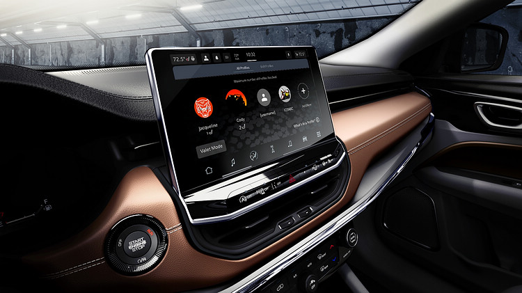 ![]() 內裝配備8.4吋起跳的中控螢幕,高階車型則是配置10.1吋觸控螢幕,採用運算速度更快的Uconnect 5系統,提供無線Apple CarPlay、Android Auto和Alexa語音助理、Tomtom導航及4G LTE Wi-Fi 熱點等功能。