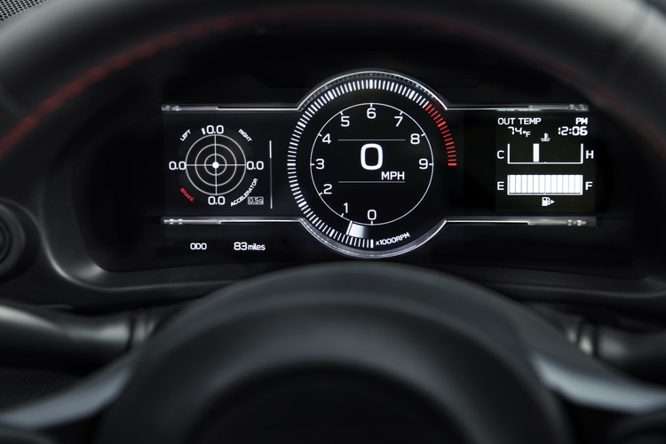 車內前方控台為簡單的水平調性布局,且位置較低讓駕駛者有較好的視野。駕駛者前方配置整合了7吋TFT液晶顯示幕的數位儀錶顯示各類重要行車資訊。可切換顯示電壓、水溫、G值等資訊。切換到「賽道」顯示模式時,引擎轉速錶會從圓形改為條狀圖形來顯示。中控台則配置八吋影音資訊系統螢幕。