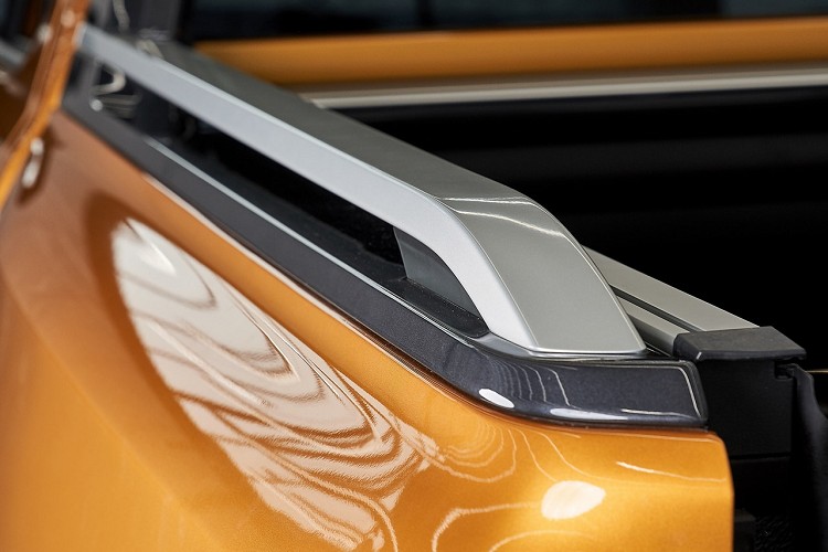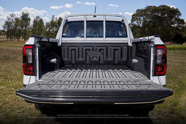 從貨斗的置物空間開始,往往都是皮卡的焦點,Ranger擁有1,200公升至物容積,可以在後輪之間容納一個標準的歐洲貨物棧板。根據車型不同,貨斗長度從1,638mm至2,305mm不等,比起上一代寬度增加50mm。在後保桿的兩側設計側踏板,便於上下車操作使用,後斗尾門可兼做工作台,消費者可選配電動捲簾們。