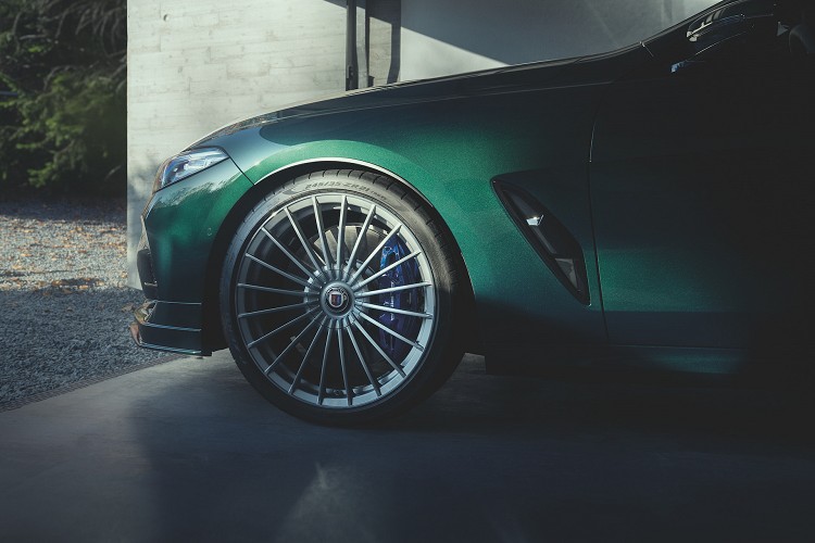外觀造型除了發亮水箱護罩外,也針對空力套件些微變動。前保桿下緣具有較大的進氣口,可以大口吸氣以及散熱。同時,車尾還有一個黑色的擴散器和一個後擾流,能快速排出車底空氣與帶來下壓力。鋁圈換上21吋20輻Alpina Classic鍛造規格,並且使用倍耐力的降躁輪胎,行駛中能更加優雅與豪華舒適。