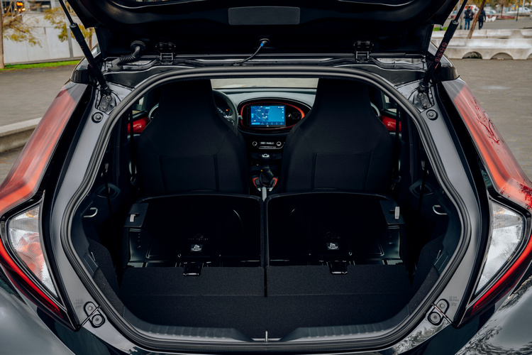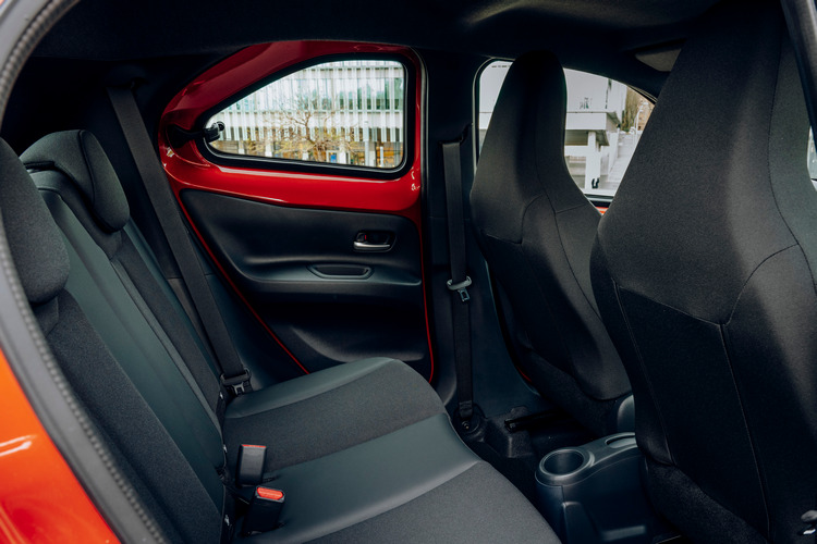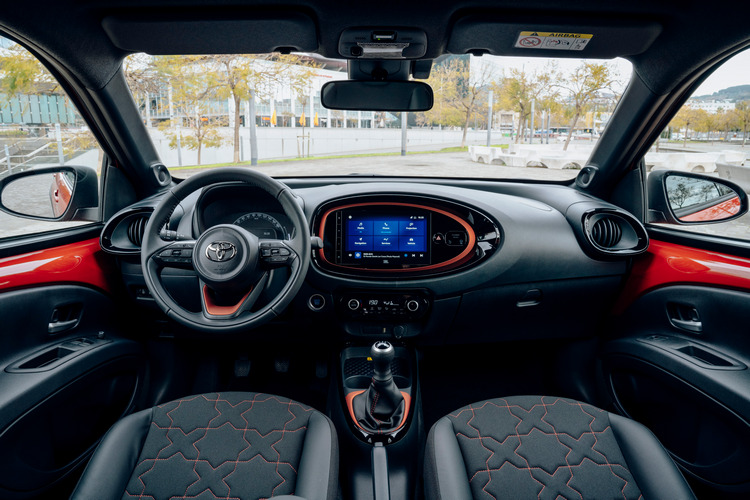 車室內以黑色搭配車身色,中控台、排檔桿等處設計簡潔而大膽鮮明,座椅的花紋也是大塊鮮明,並將車名中的「X」藏於其中。車頂有向上挑高,1510mm的車高也比Aygo多出50mm,讓車內乘客在嬌小的車身下盡可能降低侷限的乘坐感。車內也使用了許多隔音材質,號稱擁有同級最佳的靜肅性表現。