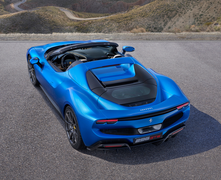 為了確保敞篷車身的剛性,296 GTS在296GTB的底盤基礎上再進行優化(特別是在A柱、B柱與車側門檻處)。其抗扭曲剛性與抗彎曲剛性都比過去的Spyder車型更好。動力上與296 GTB一樣搭載新世代的插電式油電系統,引擎部分為2992cc排氣量的V6汽油渦輪引擎(最大馬力663hp),馬達部分可輸出167hp最大馬力與32.1kgm最大扭力,系統的綜效最大馬力為830hp/8000rpm、最大扭力75.5kgm/6250rpm,驅動設定為後驅。