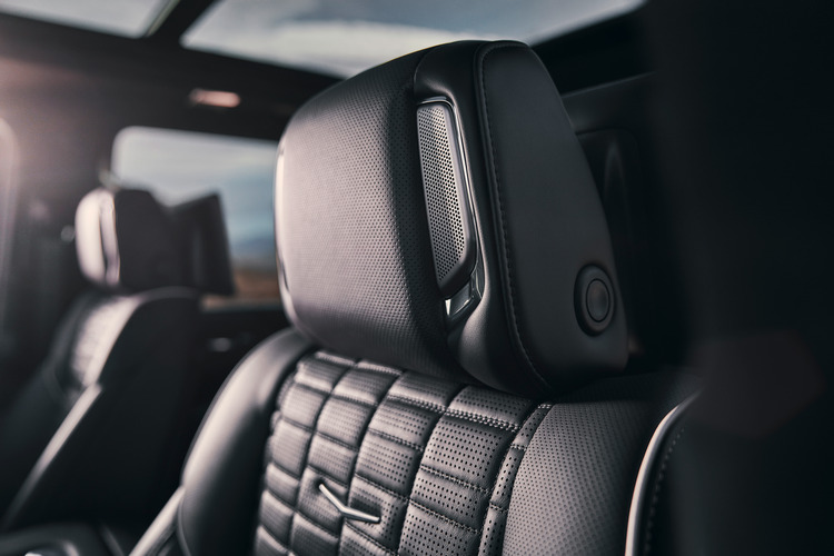 外觀上,在水箱罩網格、前下擾流與專屬式樣22吋大尺碼鋁圈上都有做黑化處理,展現V-Series的霸氣風格。其他像是左右側共四出的排氣尾管、Brembo製專屬六活塞前煞車、Edge Red製煞車卡鉗等也都很吸睛。懸吊採用Magnetic Ride Control 4.0電磁避震阻尼控制與 Air Ride Adaptive可調氣壓懸吊系統。後懸吊的氣壓彈簧與避震器也經過專屬調校。而在切換至V模式下則可對引擎動力、懸吊、轉向等系統功能自由調整設定,並降低車身高度與改變V8引擎的排氣聲浪。