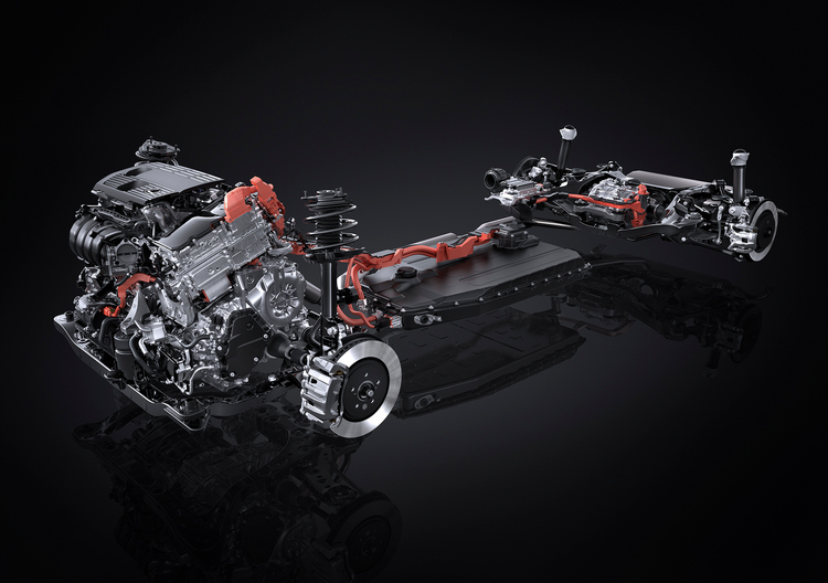 電動化技術帶來更幫操駕體驗動力上導入了新的油電混合動力系統(RX500h),前方配置2.4L渦輪引擎、馬達與六速自排變速箱,後方配置「eAxle」高輸出馬達。電池則搭載Aqua首次採用的雙極鎳氫電池。在引擎與馬達間配置了離合器,在六速自排與馬達間同樣配置了離合器來取代扭力轉換器。依據駕駛情況的不同來調整引擎與馬達的動力輸出,讓動力輸出更有效率、反應也更靈敏。