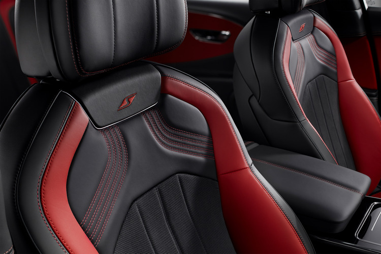 車室內裝則採紅黑雙色搭配,材質上也選用高檔皮革搭配的DINAMICA超細纖維材質,DINAMICA用在方向盤、排檔桿、座椅座墊與椅背。皮革則用於座椅側面支撐、車門內飾與前方控台上。儀錶設計採取賽車風格,圖案設計與 Continental GT Speed相同。此外,在車門檻飾板與空調出風口等處也都可以看到「S」徽飾。
