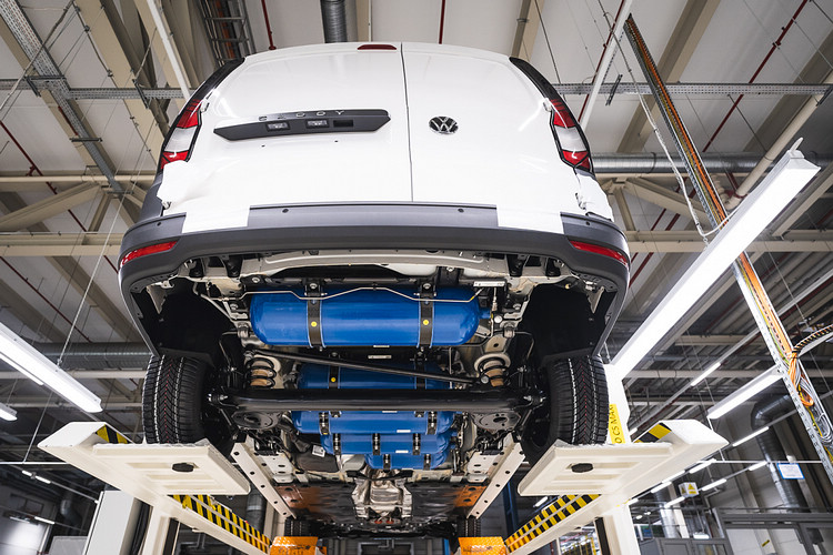 Caddy Maxi TGI![]() ▲Caddy Maxi TGI採用1.5升渦輪增壓引擎並使用壓縮天然氣作為主要燃料,最大馬力131ps。Caddy在原本的汽、柴油動力引擎之外,針對Caddy Maxi又新增一款Caddy Maxi TGI車型,標榜搭載可使用CNG(壓縮天然氣)作為燃料來源的1.5升渦輪增壓引擎,而此款替代能源動力系統可輸出131ps的最大馬力,原廠並宣稱可同時保有優異的駕駛性能和超低能耗。 ![]() ▲由車底可以明顯看見藍色的鋼罐直接安裝在車底下。![]() ▲由於壓縮天然氣鋼罐位在車底,對於原本的載物空間沒有影響。不過,這款車每百公里消耗4.3公斤的CNG,換算起來,每公里消耗的CO2為118公克,實際上和一般汽油車款差異不大,而其加滿後的單次續航里程為400公里,也比起同一般車款少許多,不過若是加上汽油備用油箱,則可再增加120公里。此外,受限於CNG鋼罐的體積,目前只有Maxi長軸版的Cargo、Kombi、Caddy Life和Style等車型才能搭載這套TGI動力系統。