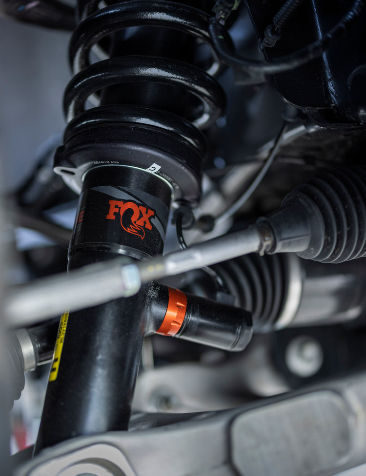 十速「Select Shift」在機械結構上也予以強化與採用大口徑鋁質驅動軸等,提升扭力輸出表現,在道路或越野行駛下動力輸出都更為順暢。重視越野表現的後五連桿懸吊採用了長拖曳臂、橫向拉桿與24吋圈簧,在沙漠行駛時有更好的穩定性。配備FOX Live Valve電控避震系統,兼顧乘坐舒適感與側傾抑制能力。避震器會針對懸吊感應器所回傳的訊息每秒做數百次的路面狀態監測,並以此不斷調整避震阻尼特性。