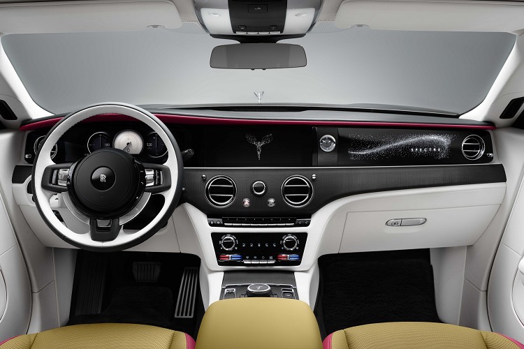 除了優雅的星光飾板, Spectre 還搭載了全面新設計的SPIRIT奢華數位架構,其沿襲經典的勞斯萊斯風格。SPIRIT架構可對汽車各項功能進行管理,並與勞斯萊斯專屬Whispers 應用程式實現網際網路服務。客戶可與車輛進行遠端連結,接收由勞斯萊斯奢侈品智庫團隊專家們提供的資訊。在SPIRIT奢華數位架構的支援下,客戶首次將Bespoke高級定製化需求延伸至虛擬世界。勞斯萊斯客戶們對車內Bespoke高級定製鐘錶非常青睞,因此,車內鐘錶的錶盤顏色設計與內飾色調相互呼應。