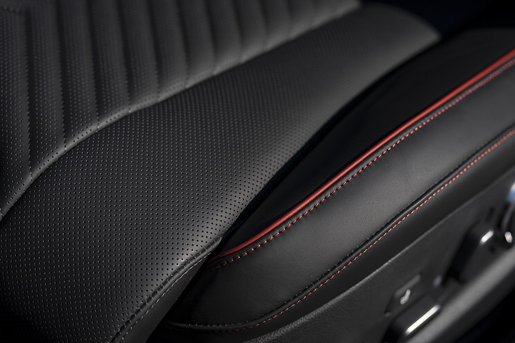 座椅以菱格壓紋搭配對比滾邊及縫線,同時兼顧舒適感和視覺美感,而車主還可選配具備雙前座按摩功能的舒適型座椅套件。