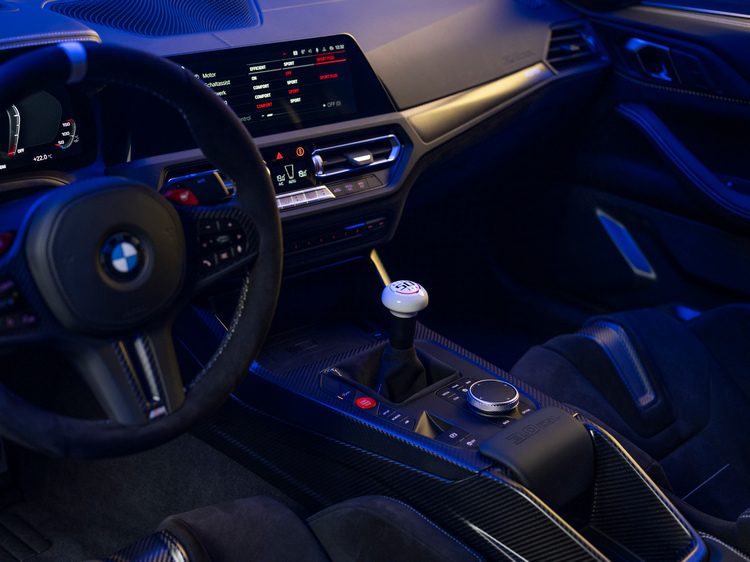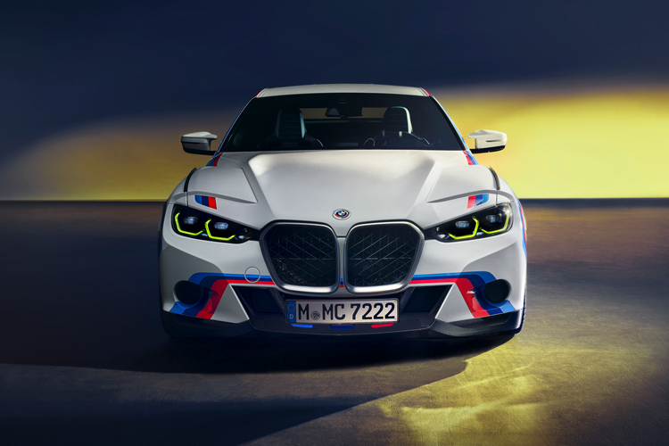 在Coupe的流暢車身線條與外擴的輪拱之外,3.0 CSL的空力件也相當吸引目光,如前下擾流與車頂及車尾的擾流翼等。輕量化的車體結構則是來自對於碳纖維與碳纖強化樹脂材質(CFRP)的大量運用,也讓它的馬力重量比達到2.9kg/hp。腳上則是配前:20吋、後:21吋鍛造Y形輻式樣輕量鋁圈,搭配與米其林共同合作開發的專屬輪胎。胎壁上也有「50」的字樣來凸顯這款M GmbH五十周年紀念的特別車款。