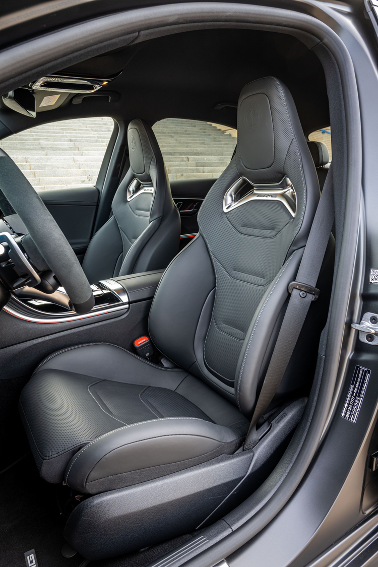 在電動渦輪的加持之下,這具2.0升引擎可輸出世界量產四缸引擎最強的476hp/6750rpm最大馬力與55.6kgm/5250-5500rpm最大扭力。加上配置於後軸、可輸出204hp馬力的電動馬達,整個插電式油電動力系統的綜效最大馬力達到680hp、最大扭力104kgm。搭配「AMG SPEEDSHIFT MCT 9G」雙離合器自手排變速箱與AMG Performance 4MATIC+四驅系統,0-100km/h加速成績3.4秒,極速被電子限速於250km/h。若選配「AMG Drivers Package」套件則可將限速值提高到270km/h。