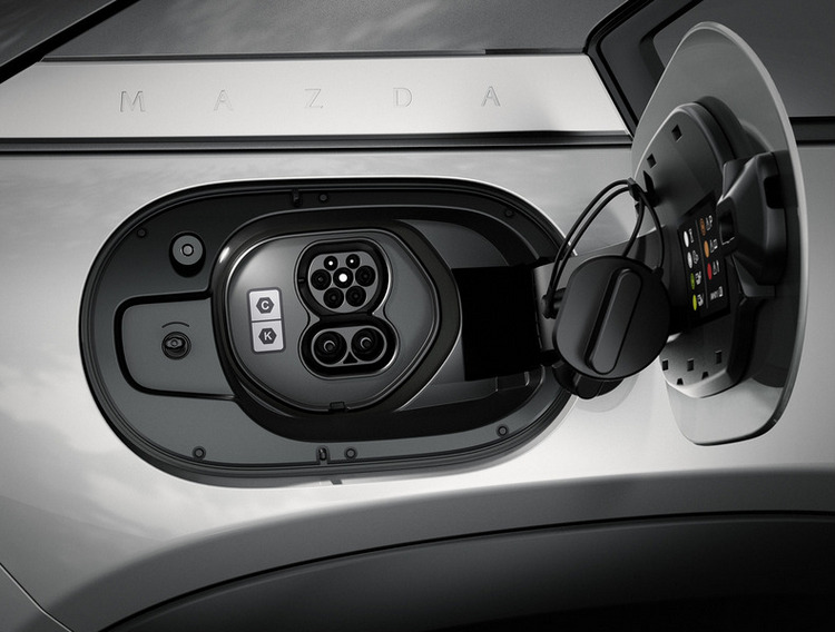 MX-30在MAZDA的多樣性電動化戰略之下,美國市場與歐洲一樣先是用EV純電車型在2021年10月上市。MX-30 EV搭笧「e-SKYACTIV」新世代電動化技術,動力系統是由電動馬達、電池模組、變流器、DC-DC整流器所組成。變流器將從電池輸出的直流電轉成交流電來驅動馬達,DC-DC整流器則將電壓降壓至12V來供應車內電機系統。