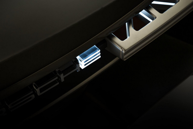 貫穿式車尾燈嵌入透明發光的「Porsche」浮雕字樣,充電時字母「E」還會緩緩脈動。