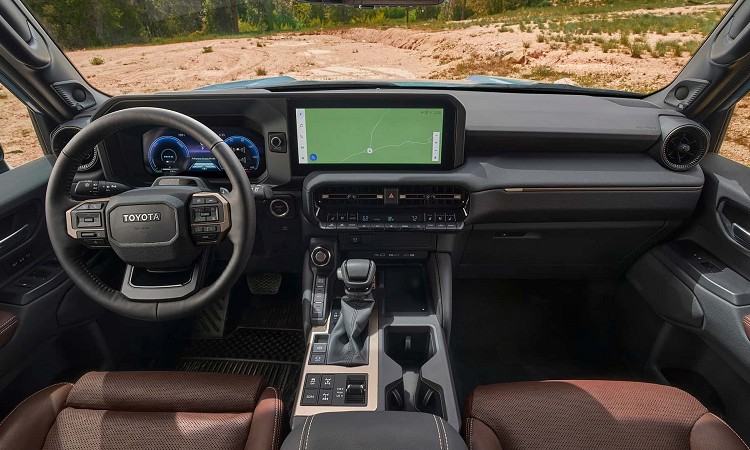 與之前所有Land Cruiser相同,新款250系列標準配備四輪傳動系統,它是一套全時系統,帶有可選擇的兩速分動箱,以及自動限滑中央差速器和可以鎖定的後差速器。在越野功能性方面,絕對是Land Cruiser 250的強項,車身離地高度為23公分左右,越野進入、離去核通過角度分別為31度、22度和25度。車身許多重要部件都隱藏在底盤縱梁內,將有助於通過各種崎嶇的地形。底盤後懸吊使用拖曳連趕,它看起來有點脆弱但其實相當堅固,能承受各種拖曳不至於損壞。其餘越野性能配備還有可斷開的前防傾桿、多種越野模式、下坡緩降、低速行駛控制、透視底盤等,讓駕駛者可以專注在控制車輛方向。