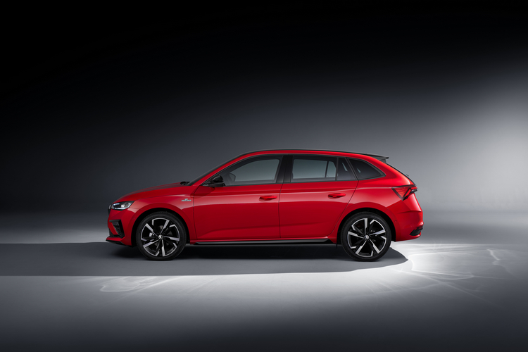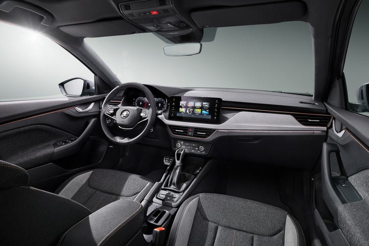 外觀上,Scala造型更細緻且銳利,視覺上更顯動感,讓人聯想起Vision RS概念車。車頭換上新的SKODA家族水箱罩、更為細長的頭燈、小修過的前後下擾流與漂亮的空氣簾導流口。
