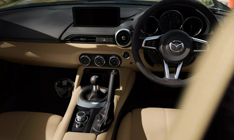 名為 Mazda Roadster S Leather Package V Selection 的新版本車型將米色頂篷與運動型棕褐色Nappa皮革內飾座椅結合,再搭配上車內其它部分的顏色匹配合成皮革結合,得到一種專屬又特殊的樣貌。另外,還標配了一套亮色系的 16 吋鋁圈,與黑色外觀完美匹配。