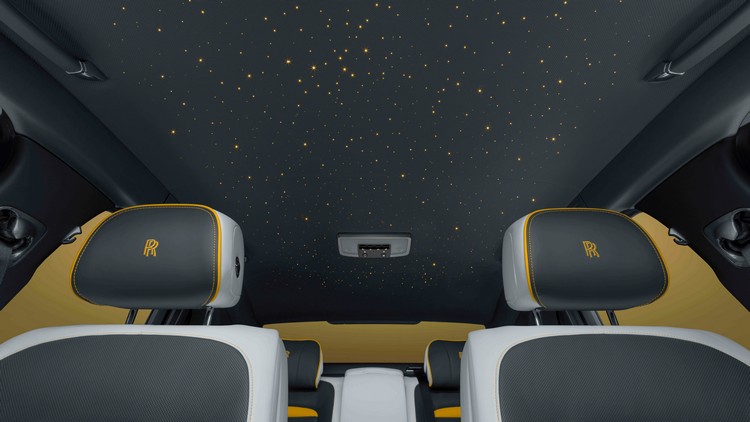 客戶可以選擇四種大膽的裝飾色—鳳凰紅、Turchese藍、Mandarin橘和鍛造黃色—來裝飾凸顯他們選擇的外觀顏色。選定的強調色應用於下保險桿嵌件、煞車卡鉗和車身輪廓。微妙的色彩進一步延伸到車室,包括客製星光車頂內襯中的1,040 顆彩色“星星”,每顆星星都通過穿孔的孔單獨放置在皮革帆布上,並由手工精確粉筆定位和打孔,這些星星讓車內充滿溫柔的光芒。