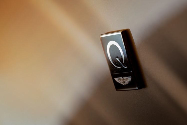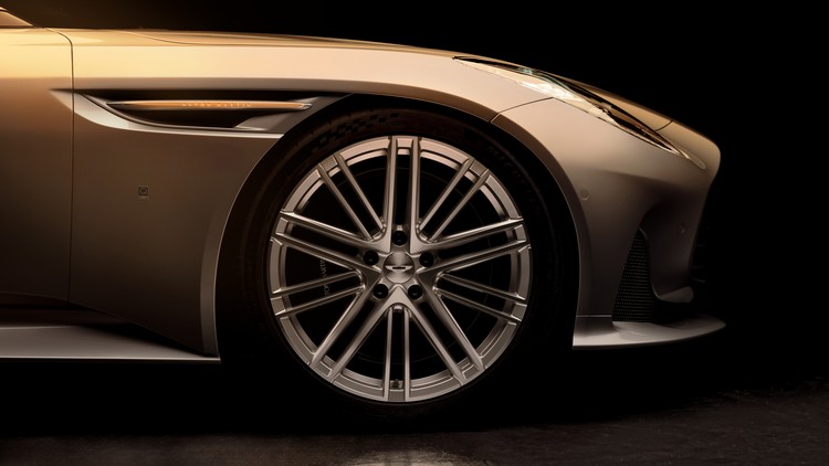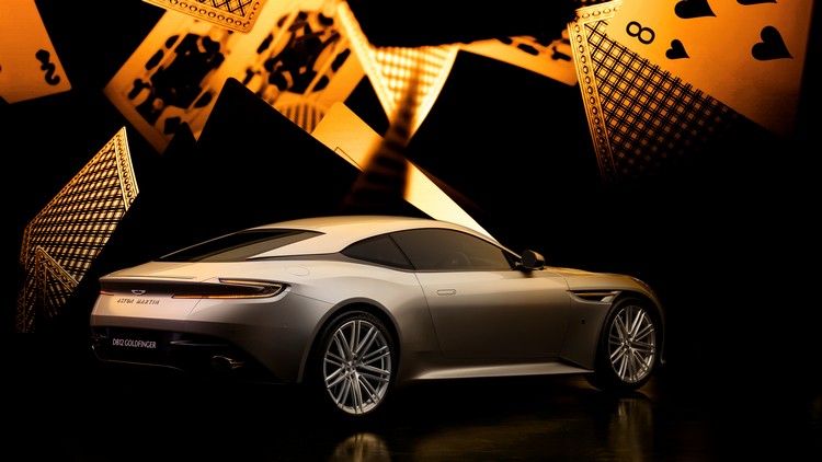 在「金手指」電影中DB5配備了讓龐德逃離對手所需要的各種小道具,但DB12金手指版則是專注於提供更舒適的龐德駕駛體驗並微妙地融入了金手指電影中的元素。例如車色就是與電影中DB5相同的銀樺木塗裝,很吸睛的21吋多輻輪圈採用銀色的鑽石處理飾面再配上黑色卡鉗、訂製的金色側板與銀底黑色琺瑯的廠徽,葉子板上也有亮鉻處理的「Q」徽飾來進一步彰顯其特殊性。