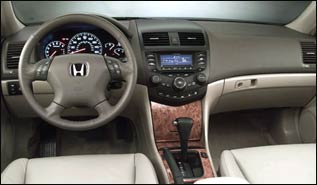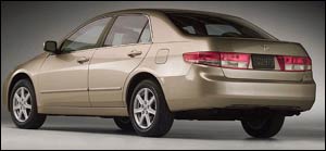 ![]() ▲車身線條走的是新一代本田家族路線,車尾則保留了部分過去的痕跡美國的車型中,另將衛星連線可聲控的DVD、導航系統列為選配系統,根據原廠表示,這套系統將可讓駕駛人無負擔操作介面,可有效提升行車安全。原廠進一步表示,新Accord是以駕駛者為導向的產品,車內所有資訊操作介面均以駕駛者為主,同時座椅在包覆與支撐、舒適均有提升,其餘提升的部分還包括:前座空間、後座腿部空間、改良音響、LED顯示介面、雙區域獨立控制空調、新設計扶手座、置杯架更新設計、多功能遙控鑰匙等。安全系統除前SRS外,還新加裝了側面氣簾(EX V6車款),同時為樹立家庭優質車款形象,車內還有前座側氣囊、LATCH兒童安全座椅裝置、OPDS乘客位置保護裝置、安全頭枕等。 機械結構方面,Accord的引擎和傳動系統、轉向機件等均有改良和更新,新引擎包括2.4升直列四缸和V型六缸兩種,四缸DOHC i-VTEC引擎輸出160匹馬力、頂級的SOHC VTEC V6引擎可輸出240最大馬力,且新款引擎符合加州州政府的SULEV「Super Ultra Low Emission Vehicle」新標準,是款符合環保要求的高效率引擎。