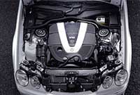 ![]() 新的動力單元,為一顆V型12缸5.5升引擎,最大馬力輸出五百匹,較之前的馬力足足增長36﹪,使CL更具有豪華跑車的氣勢和應有的水平。根據原廠公布這款名為CL600的車款,從起步加速到62mph僅4.8秒,最高速度達155mph。同時原廠表示,在秋天還會再推出一款CL55 AMG,使用的是AMG調校的高輸出5.5升V8引擎,動力輸出一樣為五百匹,零到加速成績一樣,為了彰顯AMG運動形象,該車搭載仿F1賽車化的五速自排變速系統,駕駛可由方向盤控制檔位,使CL55 AMG較其他車型更貼近跑車風格。至於原輸出306hp的V型八缸引擎維持不變,還是為CL500的標準動力系統。