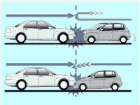 舉個實例說明:當重量比為1.6倍的大型車與小型車以55km/h時速相撞時,由於重量的差異,小型車會有反彈的現象,增加約18km/h的相對速度,相當於73km/h的撞擊力量。與55km/h的正面撞擊與64km/h的偏移撞擊相比,大小型車相撞時,小型車駕駛人受到的G值傷害高達1.7倍,車體變形程度增大為1.4倍。因此大小兩車的撞擊所造成的傷害,是遠超於目前歐美國家所訂定的標準,而如上述統計所言,大小兩車相撞的機率佔事故比例的40%,是相當不容忽視的。