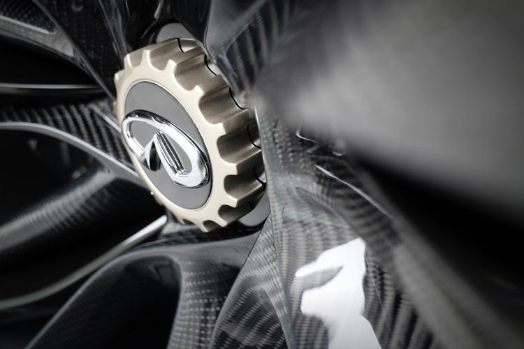 ![]() INFINITI CONCEPT Vision Gran Turismo搭載的是一具前中置4.5升V8的自然進氣引擎與電動馬達搭配組成的動力,並採用後輪傳動的方式,完美達成45:55的前後配重比,進以協助其動力滑胎時的極致性能。空氣動力的設計,則涵蓋了車底氣流的控制,車頭及車尾擴流器,此外,如刀鋒迴力鏢般的後擾流翼,也為它帶來了強大的戰鬥力。