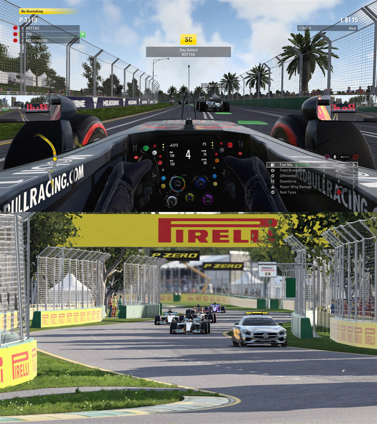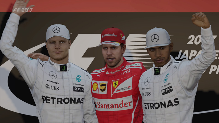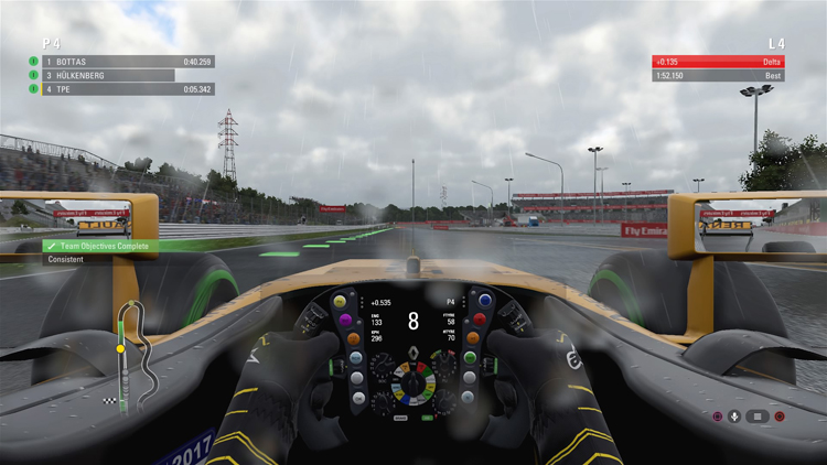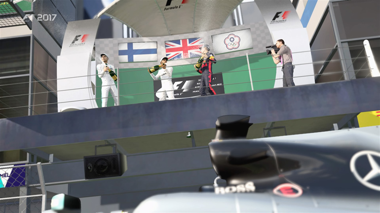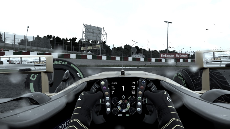 除了方向盤力道反饋較大外,天氣變化或是輪胎、動力元件與空力套件的損耗都會影響賽車的動力性能與操控穩定度,擬真程度超越Gran Turismo系列,不僅如此,參賽廠隊的賽車性能也與現實相近,玩家還可以調整AI的難度,即使選到較弱勢的車隊依舊有機會創造佳績。不過,畢竟是款遊戲,在《F1™ 2017》的遊戲操作介面中還是保有時間回溯的功能,除了車輛嚴重撞毀會主動回溯之外,比賽的過程中也可以手動操作,讓新手玩家能在發生失誤時有補救的機會而不是整場重來。