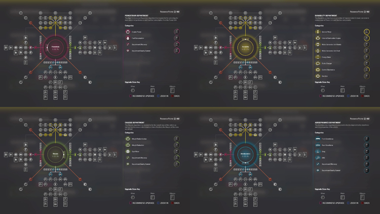 ▲生涯模式中具有多達115項升級功能,玩家可以透過賽事取得資源點數,為車輛進行升級開發。