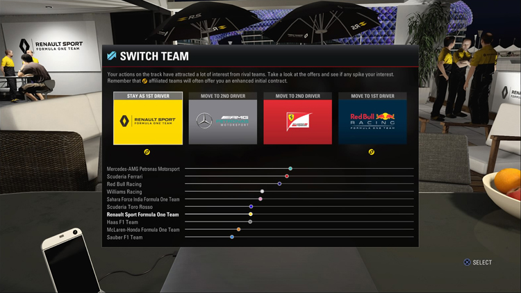 ▲完成生涯模式的單一賽季後,玩家可以考慮轉換車隊。