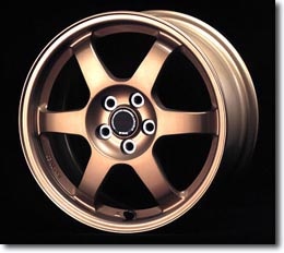 ![]() ▲Impreza與Legacy專用之鋁圈STI的另一款新產品,則是Impreza級Legacy專用之輕量化鋁合金輪圈。這一款鋁合金輪圈是STI與RAYS所共同開發的,RAYS所生產的Volk.TE37鋁圈在日本國內的賽車界中相當受到歡迎,而STI與RAYS共同開發的這款鋁圈,正是以Volk.TE37為基礎所特別研發的Impreza與Legacy之專用版。這款16吋的鋁圈是採用高剛性鍛造技術所製成,在重量上比起一般的鋁圈要輕上1~2公斤(約5.09公斤),外形上採用六幅式設計,並採金黃色塗裝,顯現出不凡的質感,售價為46000日圓。
