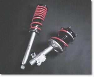 ![]() ▲Silivia S15專用之競技用懸吊套件另外一款專為Silivia S15所設計的競技用懸吊套件則除了在一般道路上具有一定的舒適性之外,更強調在非鋪裝道路上行駛時的安定性,並對後懸吊的減震特性加以調整,以確保懸吊與路面間的接地性。前後懸吊的行程,也在不犧牲車子性能的前提之下予以低重心化,同時也保持了前後懸吊做動的平衡性,而在彎道的死角處,則 能藉由於前懸吊確實的抓地使駕駛者產生極大的信賴感。整組套件的售價為115000日圓。