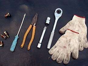 ▲只要簡單幾樣工具:19mm梅開或套統扳手都可以,加上一支螺絲起子及老虎鉗就輕鬆搞定。