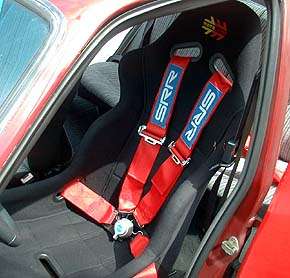 賽車必備四點式安全帶,它可以將駕駛者固定在桶形賽車椅上,不會受到劇烈煞車、急加速、過彎之慣性作用,使駕駛者上半身衝向前,因而無法保持標準的駕駛姿勢影響操控。操作手排車時,左腳沒有機會一直停在休息踏板上來支撐身體,必須隨時準備踩離合器,上半身的固定工作就交給四點安全帶。