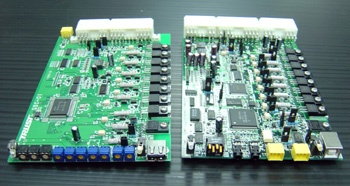 ▲黃金版(左)與Ultimate版內部電路比較,功能較為強大的Ultimate看起來複雜許多,據廠商表示運算數度更快有著黑色鋁殼外觀的e-manage Ultimate嚴格說起來並非目前市售之水藍版、黃金版的改良產品,而是屬於功能更為強大的進階型產品。不僅在更多細部安裝設定上可以透過軟體來進行,在多項細部機能的設定調整範圍上也比黃金版更大,功能更為強悍。主要功能包括了: