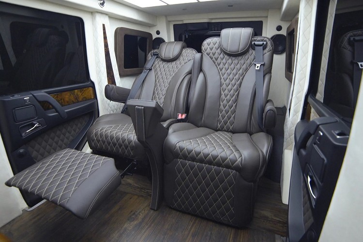車身尺寸拉長後,車內空間只安置兩張豪華座椅,這很顯然是要乘坐非常重要的貴賓。超過一半的內裝被指定為超頂級Alcantara絨面皮革,其餘部分則採用頂級又帶有異國情調的皮革製成。該公司的設計師開發了一種新的縫合技術,可提高耐用性及最大限度延展性,增強使用壽命與視覺吸引力。