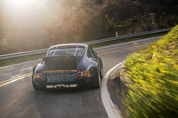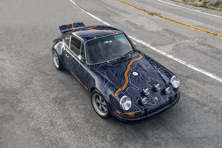 另一輛是美國著名山道「Mulholland」特仕車,根據客戶想法所打造出非常特別的Singer 911。外觀採用藍色塗裝,並披覆著訂製彩繪圖形,車窗全換上壓克力玻璃降低車身重量,車頭有多達四顆用來夜間跑山路的照明燈,畢竟照清楚前方路況才有最安全的駕駛環境。車內同樣以黑色為主色調,空調、音響、內飾板、隔音一應具全,沒有因為跑山路而省略掉舒適配備。動力一樣是一具4.0升水平對臥六缸引擎,搭配上六速手排系統與碳陶瓷煞車。