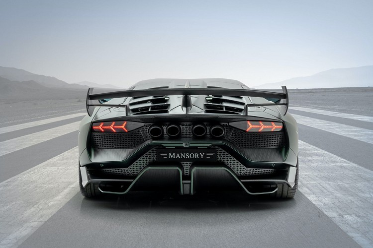 這些特殊的輪弧足夠容納前20吋規格與後21吋規格的Mansory鍛造鋁圈,輪胎使用倍耐力P Zero,規格前255/30R20和後355/25R21。車身塗裝使用特殊的Vento Verde特殊顏色與內部醒目的綠色相呼應,車艙內大量運用Alcantara和高檔皮革包覆,提高超級跑車的奢華感。