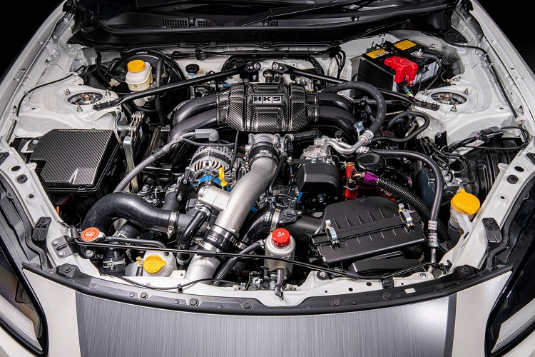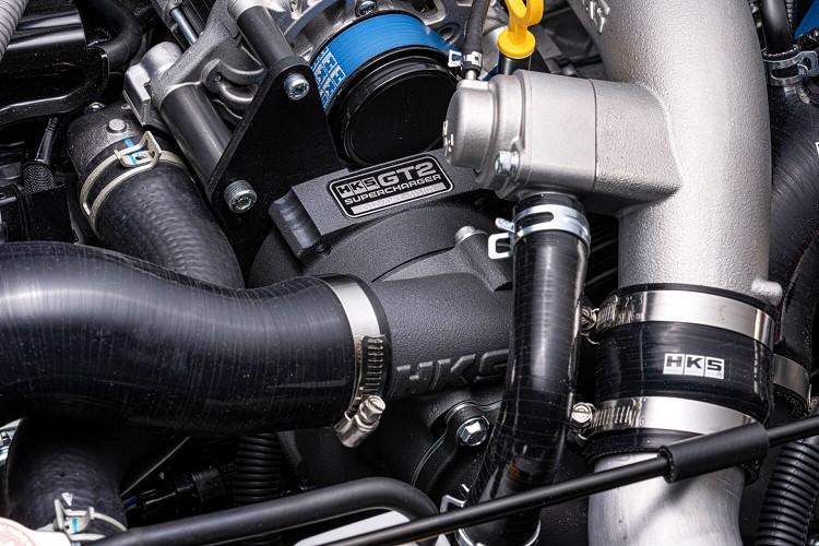 這輛經過HKS改裝過了GR86被稱之為GR86 HKS CONCEPT,打開引擎蓋最醒目的就是HKS GT2機械增壓,這套件與前一代車款相同,只是針對新GR86做了細節部分修改。新的GR86在動力方面已有所提升,HKS尚未公布經過升級後的性能數據,但相信透過機械增壓加持,想必最大馬力會再次進步。