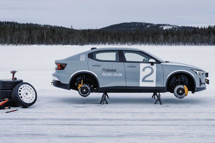 去年在Goodwood賽車節上,Polestar 2電動車大放異彩,展現出品牌出未來電動車世代的決心。近期在冰上測試中的Polestar 2,原廠又再次對它進行調校,換上拉力版本的避震器系統,與量產車型升高30mm,並擁有19吋的OZ Racing鋁圈,輪胎上布有冬季胎用的鉚釘,每顆輪胎鉚釘不少於490顆,尺寸規格為245/35R19。