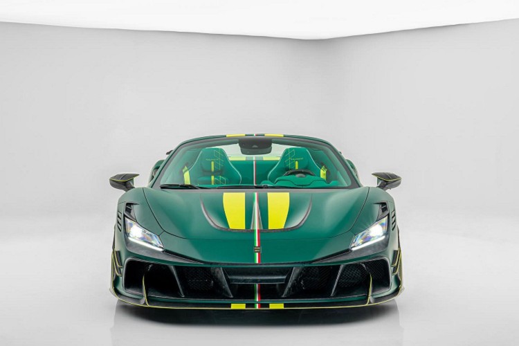 Mansory推出了F8XX Spider空力套件看起來就與Coupe相同,車頭前端由鍛造碳纖維包覆,包括一個引人注目的分流器和兩邊的導流鰭片。在大燈下方還增加了鍛造碳纖維飾件,而保桿兩側有通風散熱與導出亂流的孔洞。前保桿下方的大型動力空氣力學鰭片與分流器延伸至前箱蓋,讓原廠空力套件更加極致。