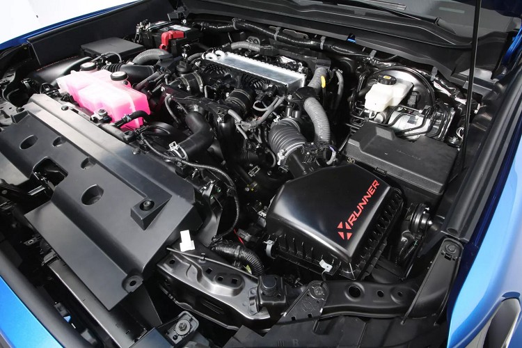引擎方面更是精彩,除非你是環保份子,不然多數人都會愛上它。概念車不再搭載普通Tacoma的2.4升四缸引擎或四缸混合動力引擎,而是搭載了一具3.4升雙渦輪V6引擎,來自於Tundra,性能輸出更高。這款引擎從Tundra車型升級而來,原輸出389匹馬力提升至421匹馬力,同時保持650牛頓米的最大扭力。即使這輛皮卡不會量產,這款引擎將很快會作為Tundra TRD性能套件的升級選項。